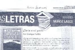 Carta a mi padre [artículo] / Marino MUñoz Lagos. La Prensa Austral (Diario : Punta Arenas, Chile)-- ago. 26, 2008, p. 28. .