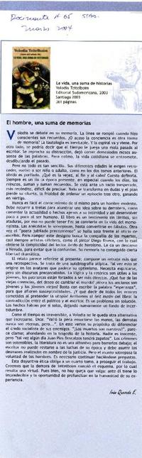 El hombre, una suma de memorias [artículo] / Iván Quezada E. Rocinante (Revista : Chile)-- no. 65, mar. 2004, p. 21 .