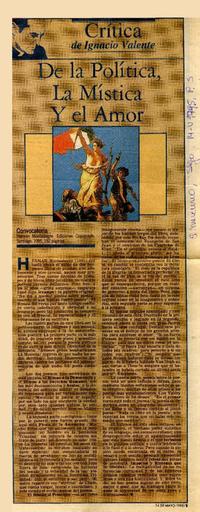 De la política, la mística y el amor [artículo] / Ignacio Valente. El Mercurio (Diario : Santiago, Chile) mayo 14, 1995, p. 5. .