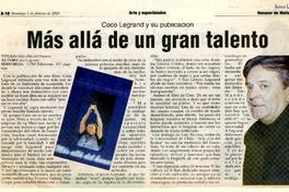 Coco Legrand y su publicación : más allá de un gran talento [artículo] Diario Renacer (Arauco, Chile) feb. 1, 2004, p. A-10. .