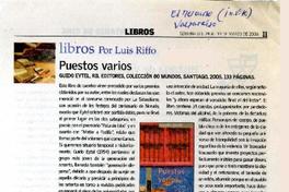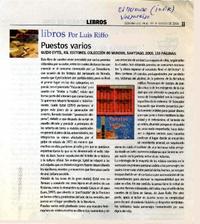 "Puestos varios" / [artículo] El Mercurio (Diario : Valparaíso, Chile) mar. 24-30, 2006, p.11. .