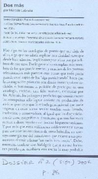 Dos más [artículo] / Marcela Labraña. Dossier (Revista : Santiago, Chile)-- no. 2 (2006) p. 86-88. .