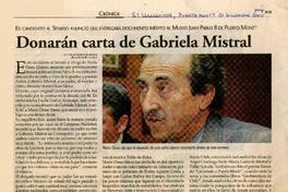 Donarán carta de Gabriela Mistral [artículo] por Carlos Ilabaca Villanueva.