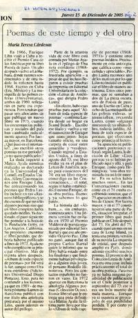 Poemas de este tiempo y del otro [artículo] / María Teresa Cárdenas. El Heraldo (Linares, Chile) dic. 15, 2005, p. 2. .