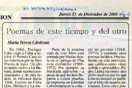 Poemas de este tiempo y del otro [artículo] María Teresa Cárdenas.