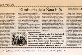 El misterio de la Ñata Inés [artículo]/ Luis Sánchez Latorre. Las Últimas Noticias (Diario : Santiago, Chile)-- jul. 15, 2006, p. 35. .
