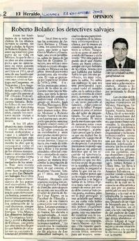 Roberto Bolaño : los detectives salvajes [artículo] / Jaime Gatica Jorquera. El Heraldo (Diario: Linares, Chile) nov. 22, 2005, p. 2. .