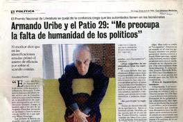 Armando Uribe y el Patio 29: "Me preocupa la falta de humanidad de los políticos" (entrevistas) [artículo] Guillermo Muñoz.