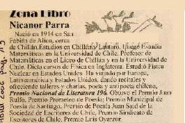 Nicanor Parra [artículo]/ Olager Muñoz C. UH Ultima Hora (Diario: Temuco, Chile)-- abr. 22, 2006, p. 13. .