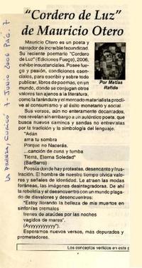 "Cordero de luz" de Mauricio Otero [artículo] / Matías Rafide. La Prensa (Diario : Curico, Chile)-- jun. 7, 2006, p. 7. .