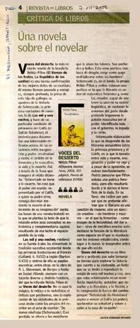 Una novela sobre el novelar [artículo] / Javier Edwards Renard. El Mercurio (Diario : Santiago, Chile) Revista de libros, jul. 7, 2006, p. 4. .