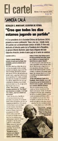 Reinaldo E. Marchant, escritor de fútbol "Creo que todos los días estamos jugando un partido" [artículo] / Vladimir Coppo G. La Nación (Diario : Santiago, Chile) mayo 2, 2006, p. 30. .