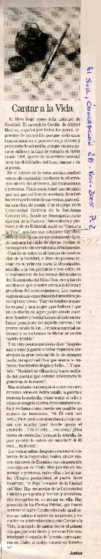 Cantar a la vida [artículo] / Justus. El Sur (Concepción, Chile) nov. 28, 2005, p. 2 .