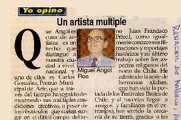 Un artista multiple [artículo] / Miguel Angel Roa. Renacer de Malleco (Diario : Chile) jun. 15, 2006, p. a-6. .