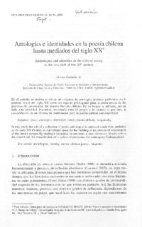 Antologías e identidades en la poesía chilena hasta mediados del siglo XX [artículo] / Oscar Galindo V. Estudios Filológicos (Revista : Chile)-- no. 41 (sept. 2006) p. 81-94. .