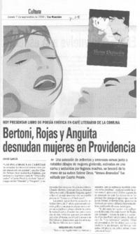 Bertoni, Rojas y Anguita desnudan mujeres en Providencia [artículo] / Javier García. La Nación (Diario : Santiago, Chile)-- sept. 7, 2006, p. 28. .