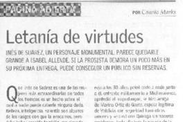 Letanía de virtudes [artículo] / Camilo Marks. El Mercurio (Diario : Santiago, Chile)-- sept. 3, 2006, p. E15 (Revista de libros). .