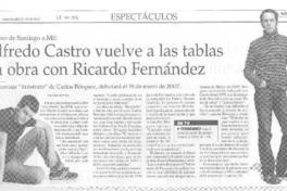 Alfredo Castro vuelve a las tablas en obra con Ricardo Fernández [artículo] Eduardo Miranda.