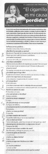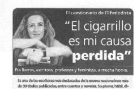 "El cigarrillo es mi causa perdida" (entrevista) [artículo]. El Periodista (Revista : Santiago, Chile)-- no. 116 (oct. 20, 2006) p. 30. .