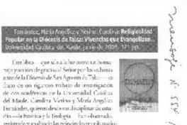 Materias: Autoras chilenas - Religiosidad Popular en la Diócesis de Talca - Religiosidad popular en la Diócesis de Talca - Merino, Carolina - Fernández, María Angélica