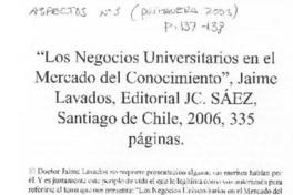 Materias: Autores chilenos - Lavados Montes, Jaime - Negocios universitarios en el mercado del conocimiento