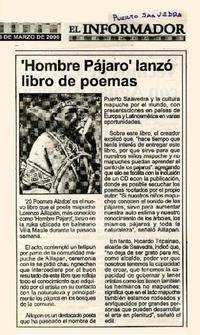 !Hombre pájaro! lanzó libro de poemas [artículo].