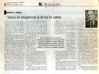 Varas es magistral (y él no lo sabe) [artículo]/ Armando Uribe. Diario Siete (Diario: Santiago, Chile) nov.10, 2005, p. 14 .