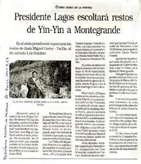 Presidente Lagos escoltará restos de Yin-Yin a Montegrande [artículo].
