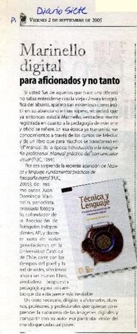 Marinello digital para aficionados y no tanto [artículo]. Diario Siete (Diario: Santiago, Chile) sept. 2, 2005, p. 28 .