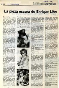La Pieza oscura de Enrique Lihn [artículo]. La Discusión (Diario : Chillán, Chile) jul. 31, 2005, p. 6-B .
