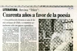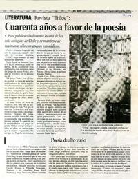 Cuarenta años a favor de la poesía [artículo]. El Sur (Diario : Concepción, Chile)-- nov. 12, 2005, p. 14 .