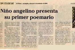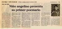 Niño angelino presenta su primer poemario [artículo]. La Tribuna (Diario: Los Angeles, Chile) nov. 9, 2005, p. 23 .