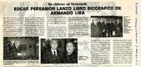 Edgar Perramon lanzó libro biográfico de Armando Lira [artículo]. Yungay (Diario, Yungay, Chile) sept. 1, 2005, p. 9 .