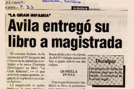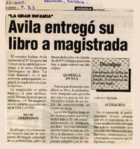 Avila entregó su libro a magistrada [artículo]. Renacer (Diario: Malleco, Chile) oct. 12, 2005, p. B3 .