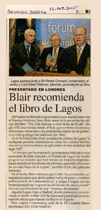 Blair recomienda el libro de Lagos [artículo].