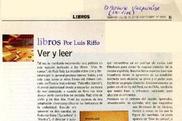 Ver y leer [artículo]/ Gana, Federico El Mercurio (Diario: Valparaíso, Chile) nov. 11, 2005, p. 11 (suplemento "In-vite") .