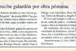 Roberto Bolaño recibe galardón por obra póstuma [artículo] El Heraldo (Linares, Chile) abr. 8, 2005, p. 2. .