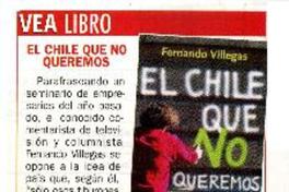 Materias: Autores chilenos - Villegas, Fernando - Chile que no queremos