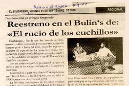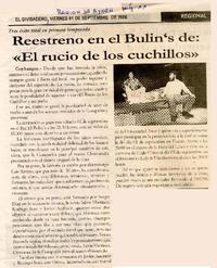 Reestreno en el Bulin´s de: "El rucio de los cuchillos" [artículo].