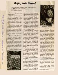 Aquí, sólo libros! [artículo]/ Jorge Abasolo Aravena. La Tribuna (Los Angeles, Chile) sept. 21, 2006, p. 22 .