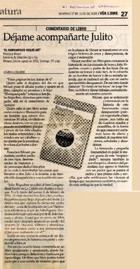 Déjame acompañarte Julito [artículo] / Ximena Ceardi. El Mercurio (Diario: Valparaíso, Chile)-- jul. 17, 2005, p. 27. .