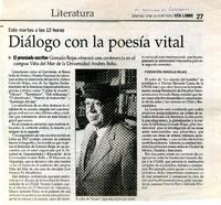 Diálogo con la poesía vital [artículo]. El Mercurio (Diario, Valparaíso, Chile) jul. 10, 2005, p. 27 .