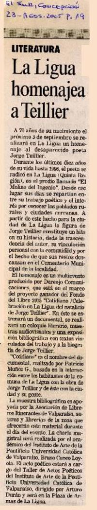 La Ligua homenajea a Teillier [artículo]. El Sur (Diario : Concepción, Chile)-- ago. 23, 2005, p. 19 .