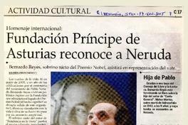 Fundación Príncipe de Asturias reconoce a Neruda. [artículo] Maureen Lennon Zaninovic.