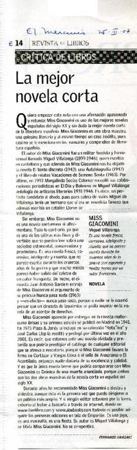 La mejor novela corta [artículo] / Fernando Iwasaki. El Mercurio (Diario : Santiago, Chile)-- mar. 25, 2007, p. E14 (Revista de Libros) .