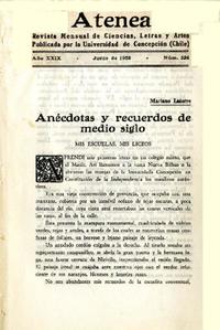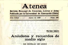 Anécdotas y recuerdos de medio siglo [artículo] / Mariano Latorre. Atenea (Revista : Concepción, Chile)-- no. 324 (jun. 1952) p. 418-440. .