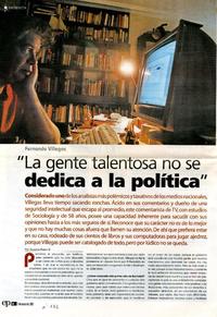 La gente talentosa no de dedica a la política (entrevista) [artículo] / Susana Rojas S. El Periodista (Revista : Santiago, Chile)-- no. 123 (mar. 9, 2007) p. 4-6. .