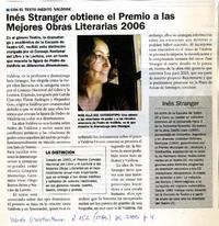 Inés Stranger obtiene el premio a las mejores obras literarias 2006 [artículo].