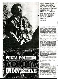 Poeta, político Neruda indivisible [artículo]. Hechos mundiales (Revista : Santiago, Chile)-- no. 60 (nov. 1972) p. 55-59. .