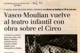 Vasco Moulian vuelve al teatro infantil con obra sobre el circo [artículo] / Cristián Campos M. La Tercera (Diario: Santiago, Chile)-- dic. 15, 2006, p. 97. .